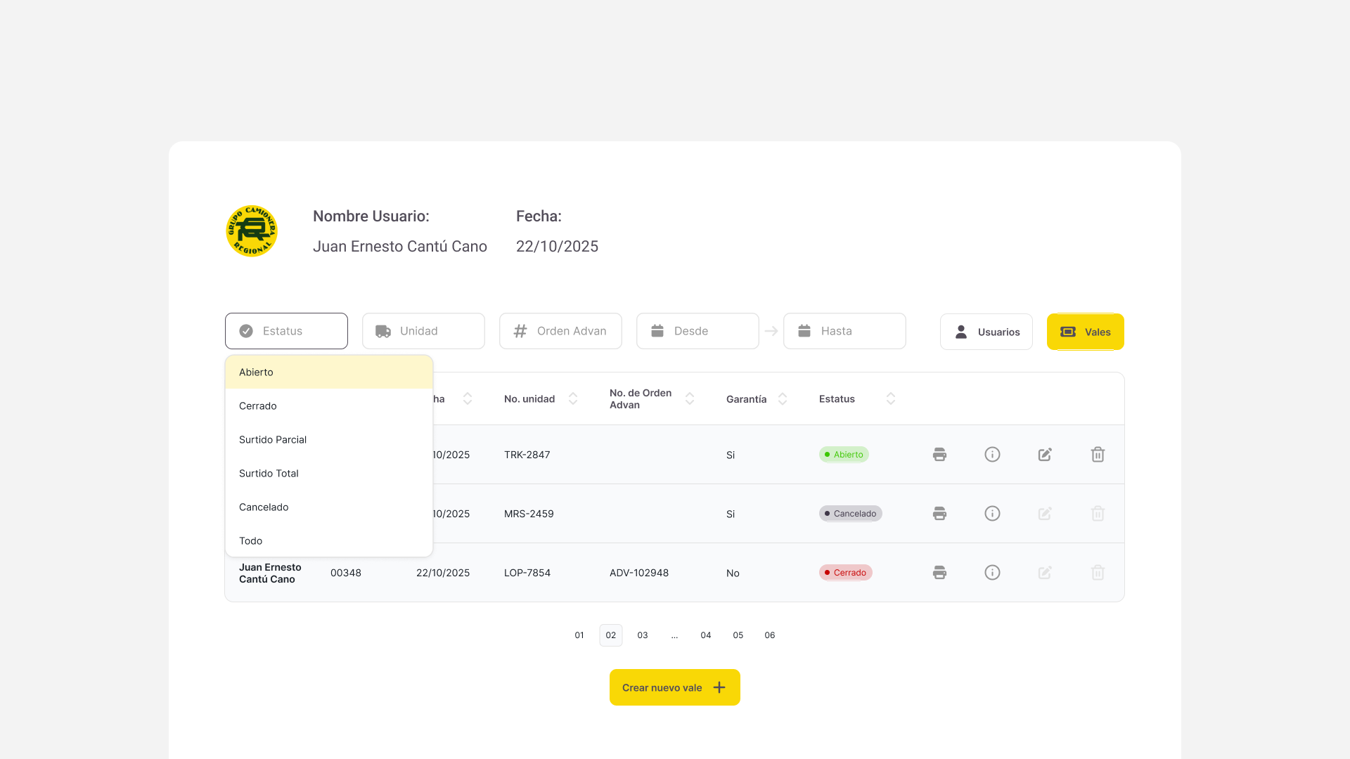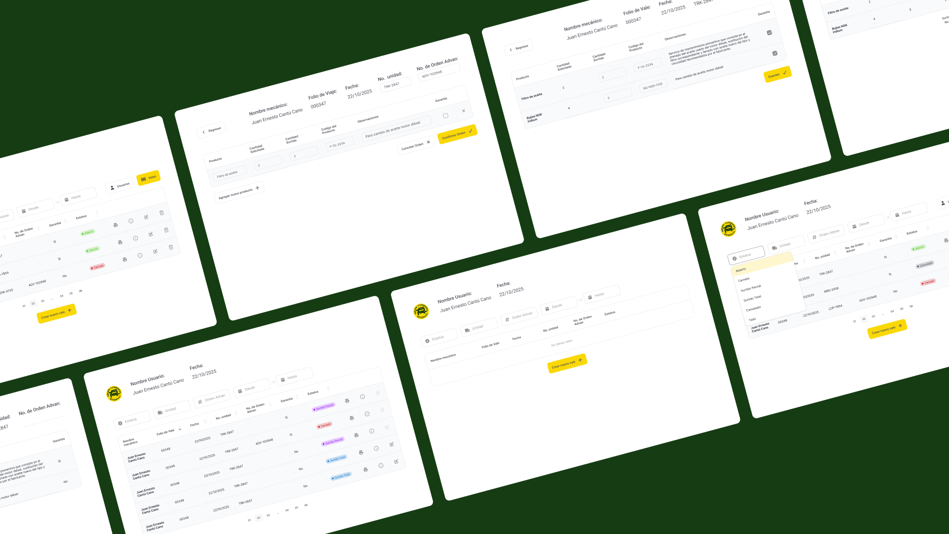 Grupo Camionera Regional operates through multiple internal teams that rely on vouchers to manage parts, repairs, and operational requests. The existing process was fragmented and prone to errors, making it difficult to track voucher status, responsibilities, and inventory usage.
